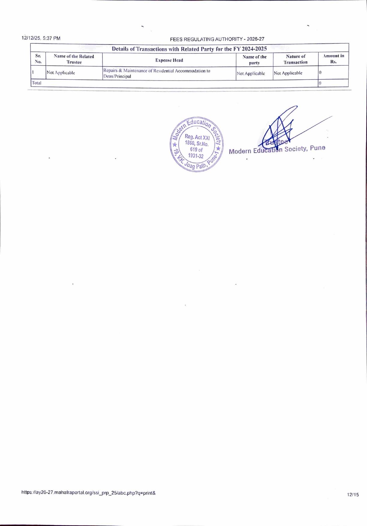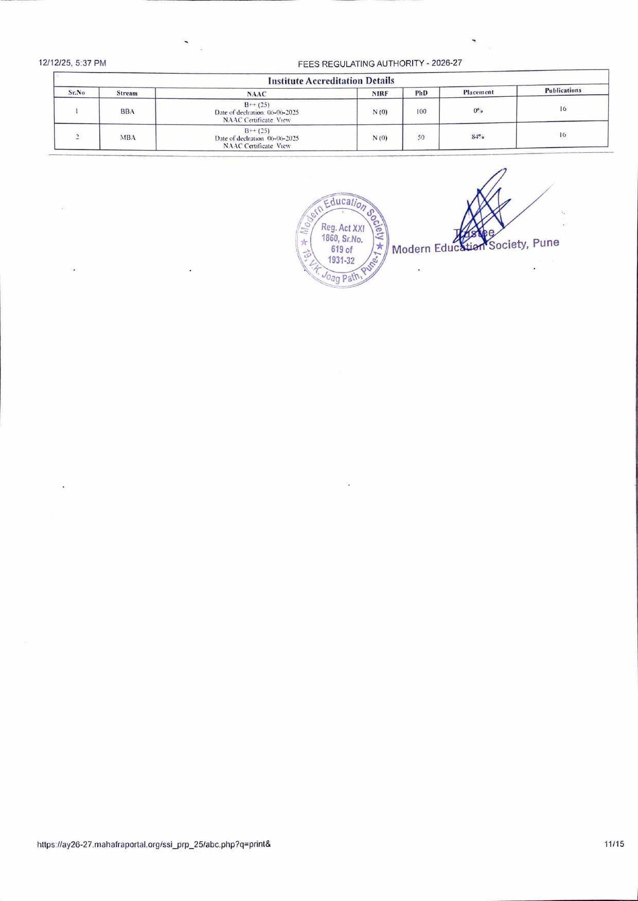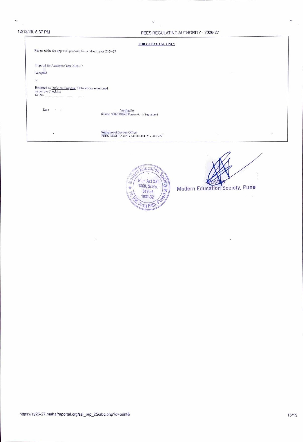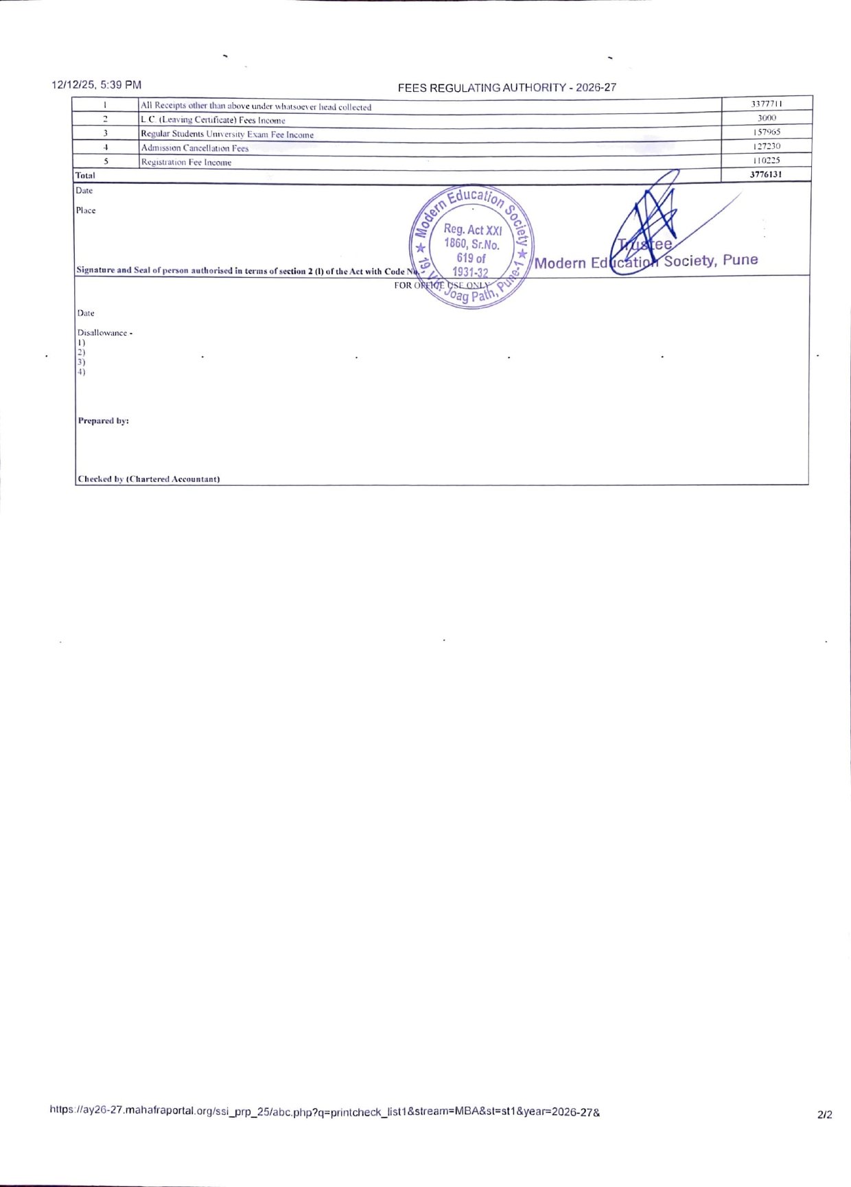 ( Note : As per the latest directives of Fee Regulating Authority (FRA), Mumbai