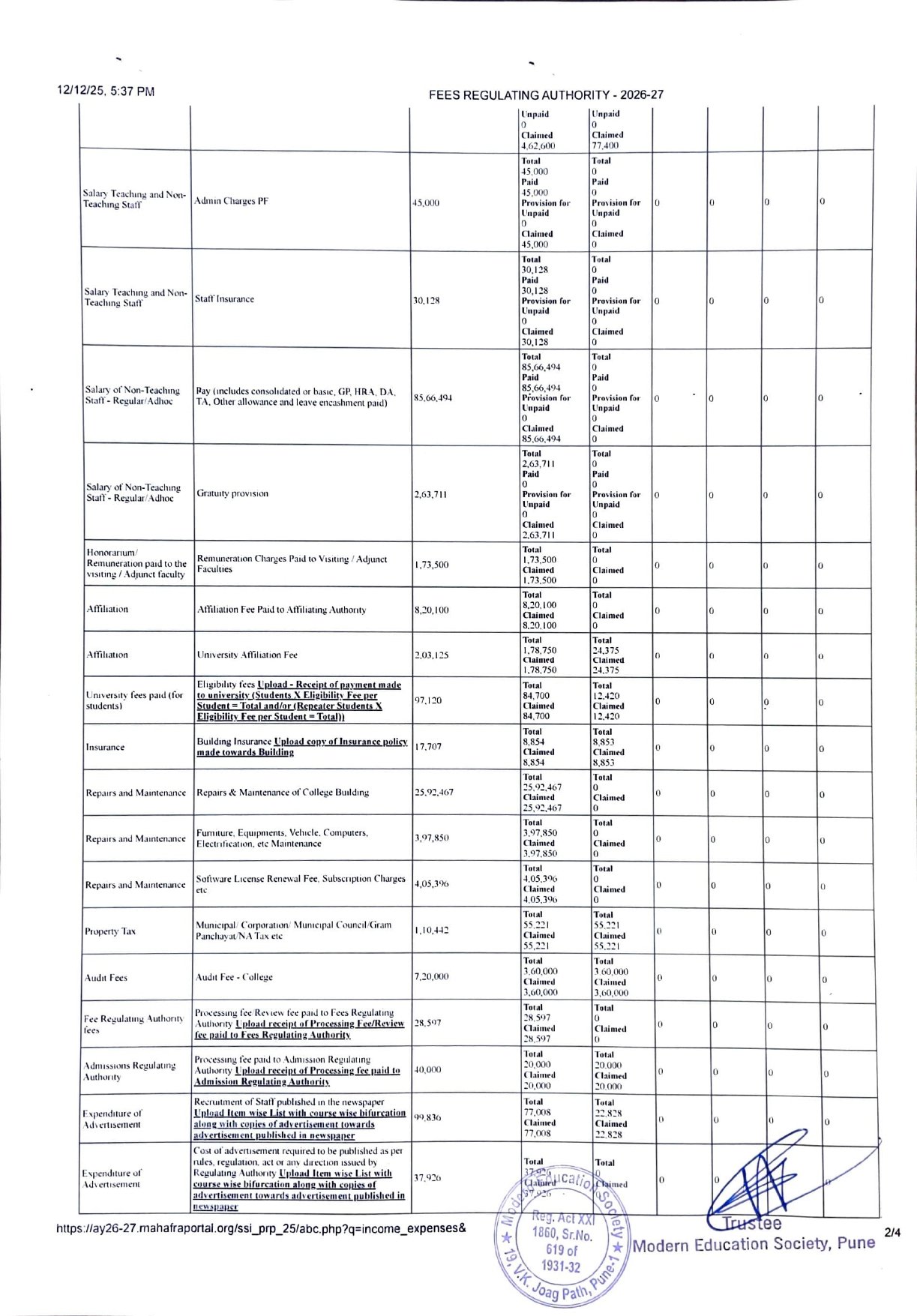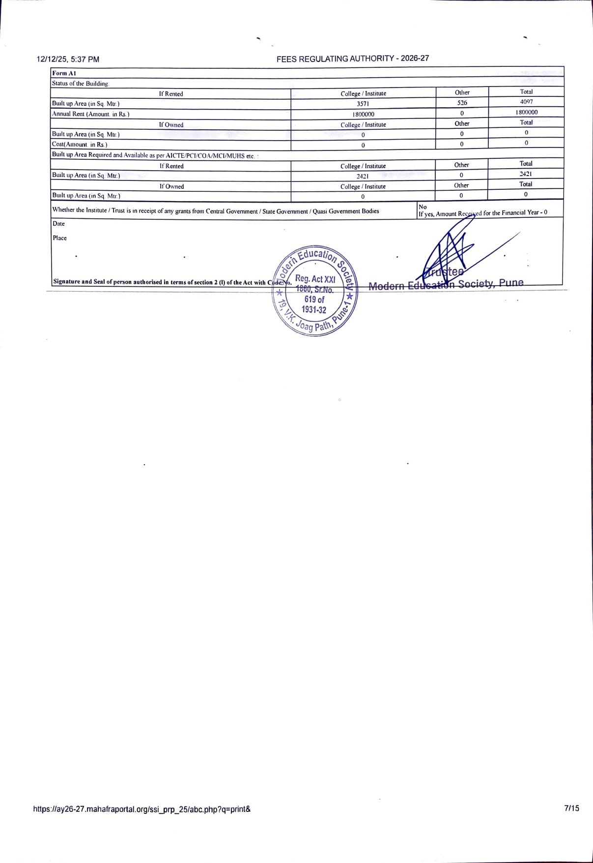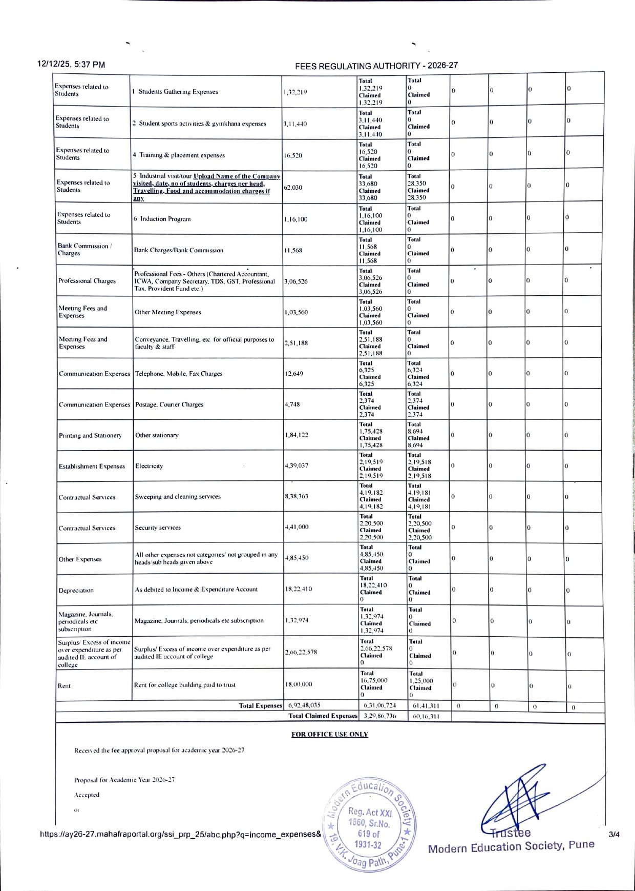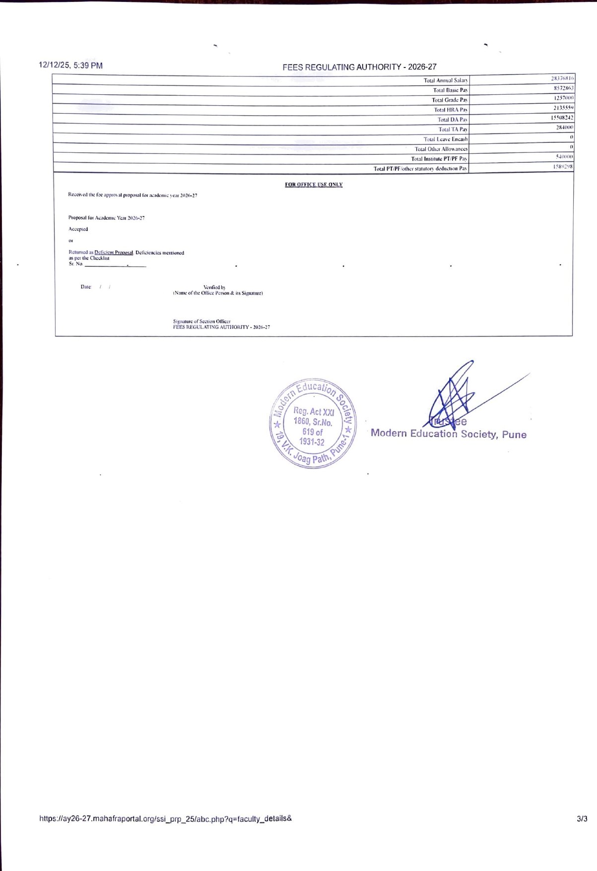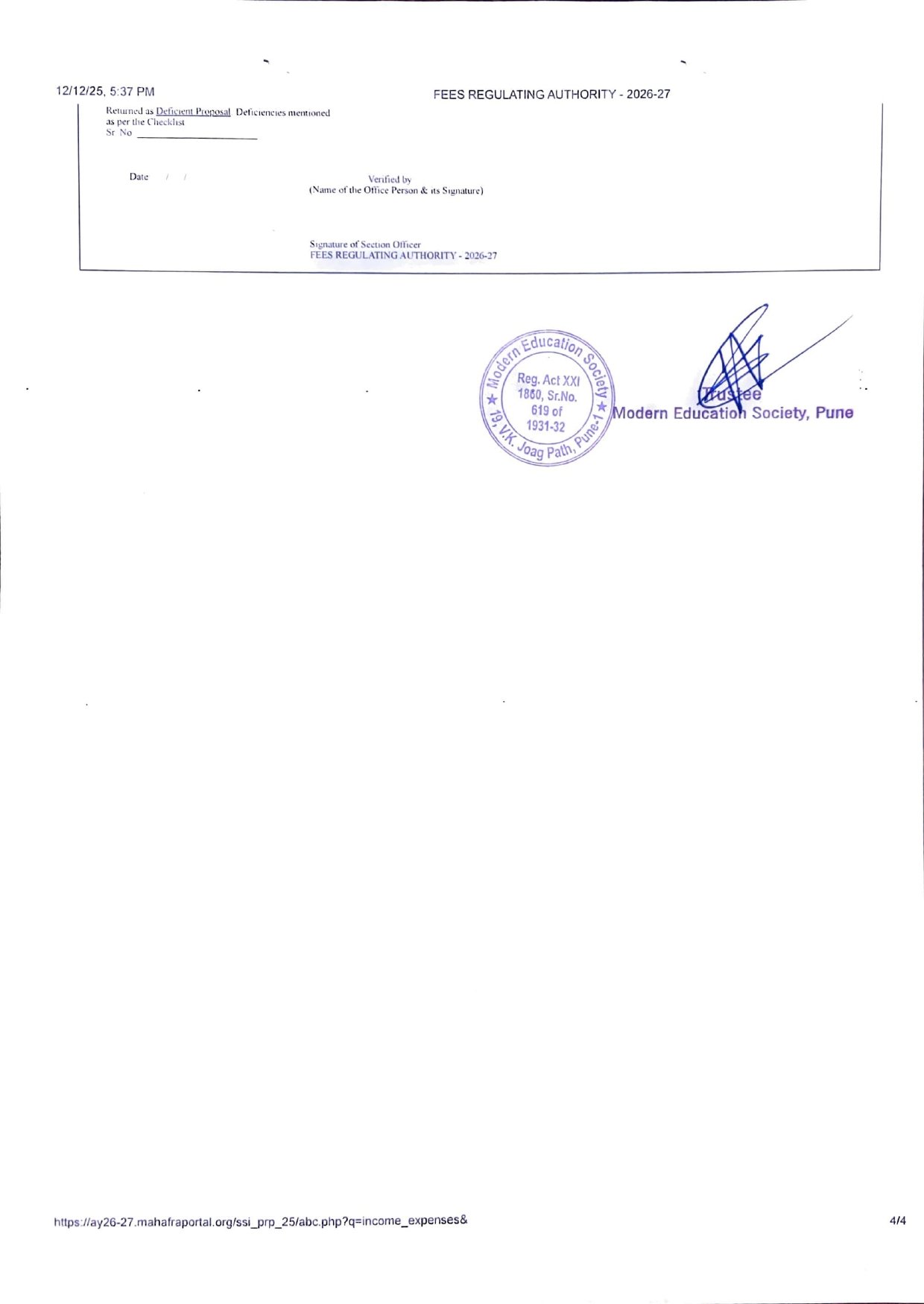 ( Note : As per the latest directives of Fee Regulating Authority (FRA), Mumbai